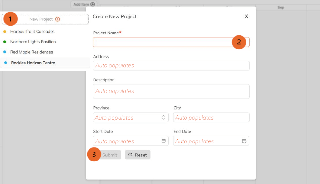 Start a new project with only the project name or address. All the other details will be automatically filed in as you go.