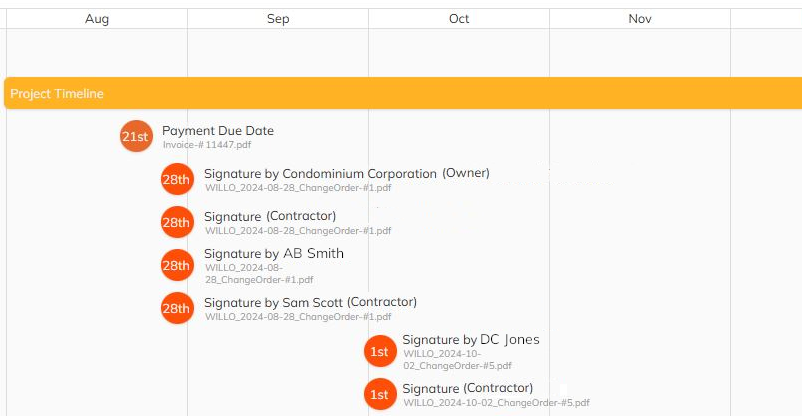 Fraimwork tracks signatures on things like Changes and Contracts so you have an easy record of how long things took to get approved, and can be notified if you need to follow up on something that hasn’t been signed.